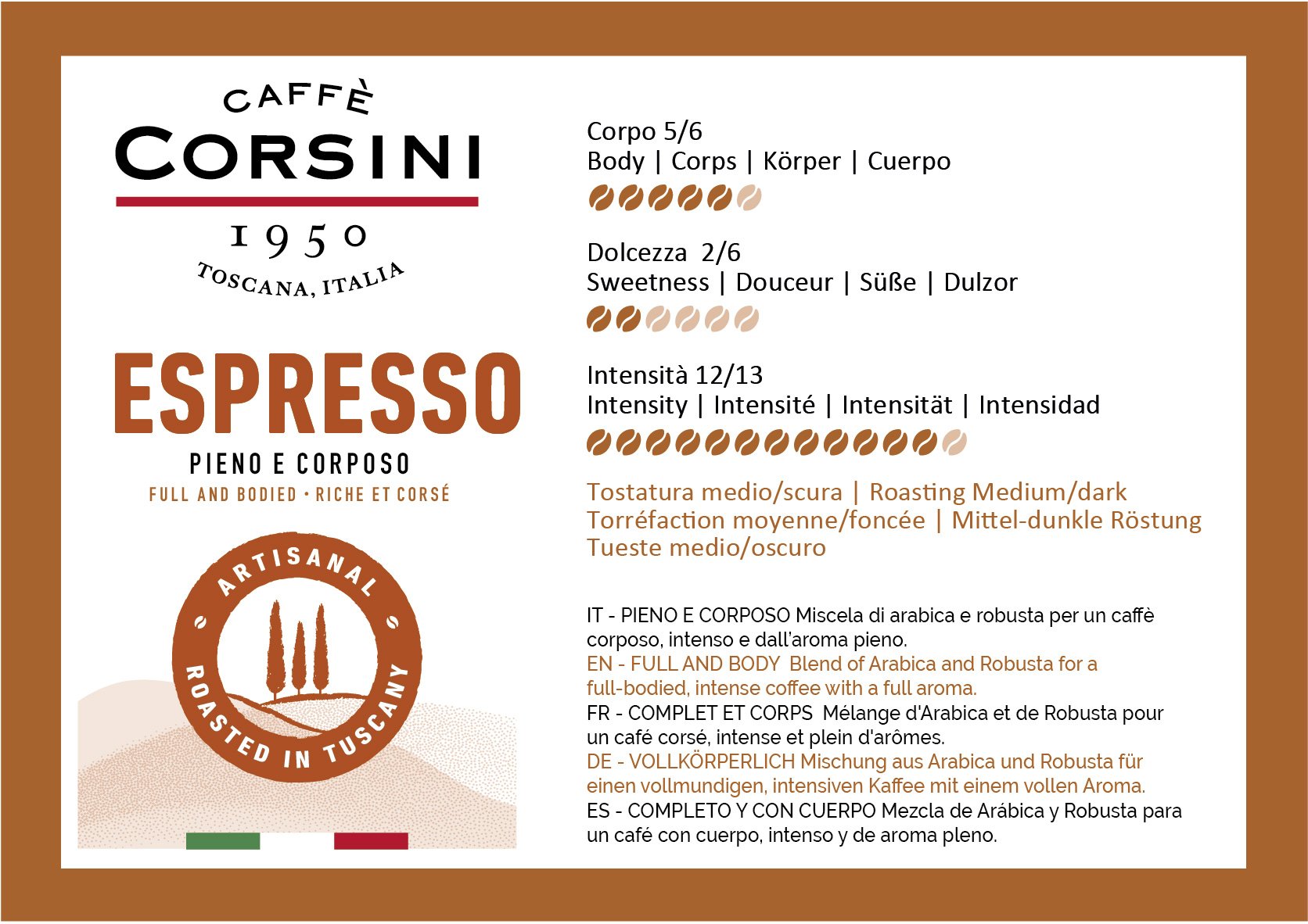 En la Toscana, Caffè Corsini crea un café excepcional y lleno de sabor. Las variedades de café de Caffè Corsini sorprenden al paladar y transmiten la tradición de un típico café italiano. Desde el cultivo hasta la taza, la calidad, el sabor y la variedad reflejan la experiencia de Caffè Corsini.